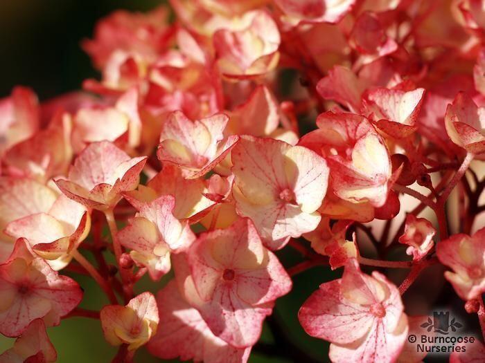 Colour-changing mopheads and lacecaps in shades of pink, white and blue from early summer to late autumn and delicate skeletons of flower through the winter.