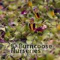 Dainty tricoloured flowers of pink, white and purple. Similar to ‘Lady Bacon’ but smaller and more clearly defined colours