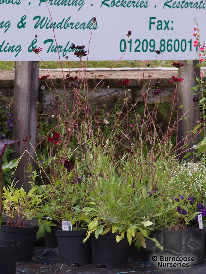 Chocolate scented crimson-black single flowers borne on stiff stems