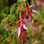 Medium shrubTypically grow to around 4-6 feet in heightErect shrub. Freely produces small flowers with red tubes, deep red, rarely white or pale pink, wide-spreading sepals and purple corollas. Fruit is oblong and red..