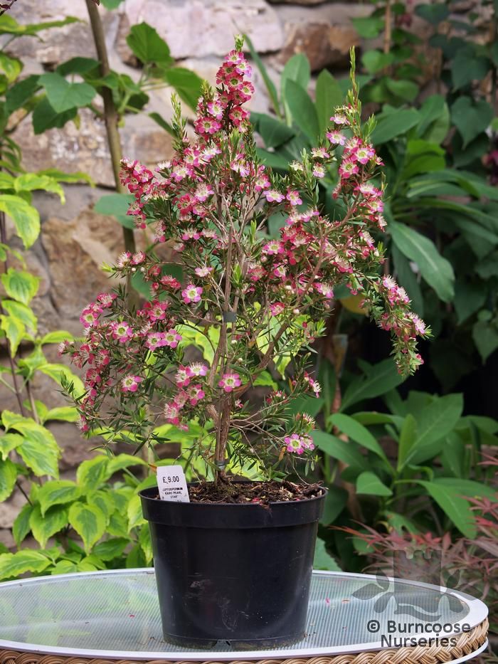 Bright cerise-pink flowers with a green centre. Bright green leaves. An excellent patio plant. A welcome new addition to the range and variety of leptospermums