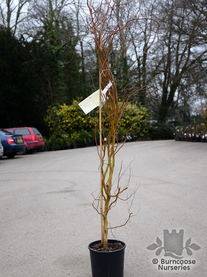 TreeSpreading tree with arching branches and spirally twisted, orange-yellow young shoots.