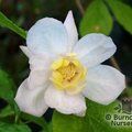 Large magnolia-like flowers white on the outside and yellowish inside with maroon markings at the base. Very rare