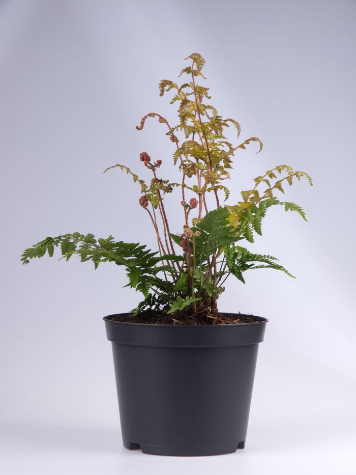 Commonly known as Japanese rosy buckler fern