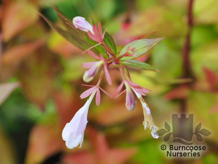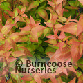 Pure gold foliage, taking on copper notes in winter. Soft pink flowers