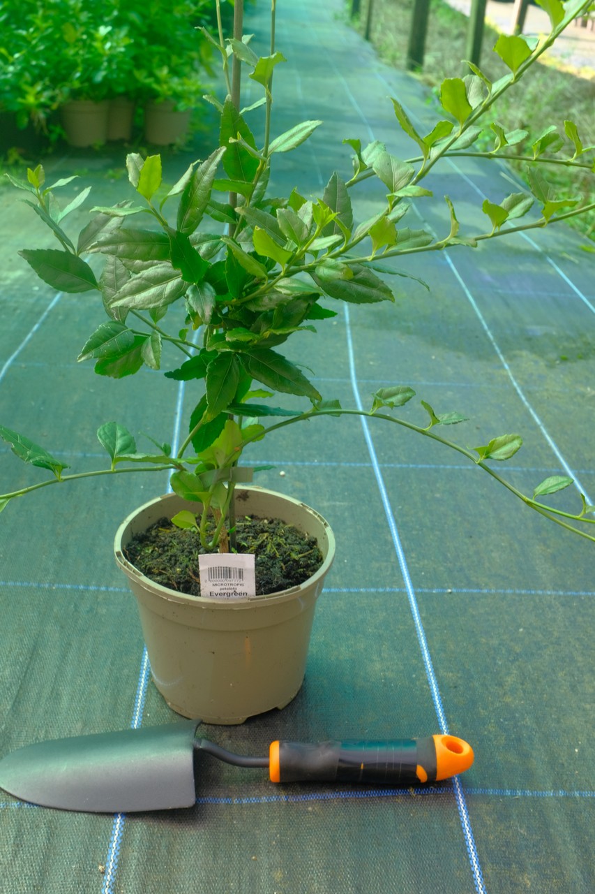 Dwarf shrubTypically only grows to a maximum of one or two feet in height but there will be some exceptions.Spreading shrub which roots at its nodes. Lax when young getting more dense with age. Flowers are followed by pale violet, elliptical fruit