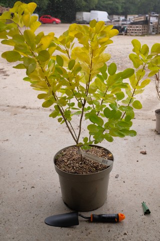 Medium shrubTypically grow to around 4-6 feet in heightBushy shrub with golden-orange leaves in spring, turning light yellow in summer. Smoke-like plumes of cream flowers in summer