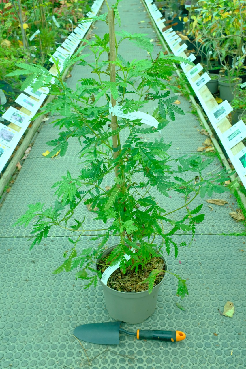 Hardy through most of the UK apart from inland valleys, at altitude and central/northerly locations. May suffer foliage damage and stem dieback in harsh winters in cold gardens. Plant can withstand temperatures down to -10°C (14°F) -