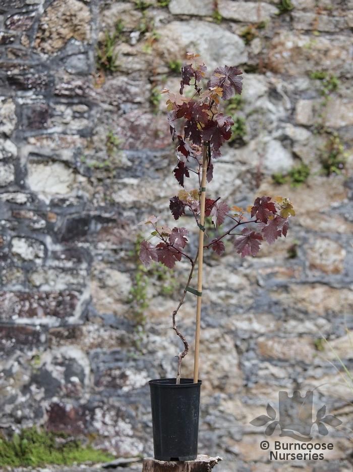 Rounded, three- to five-lobed, toothed leaves to 15cm (6in) long, grey-hairy at first turning plum-purple, then dark purple in autumn.